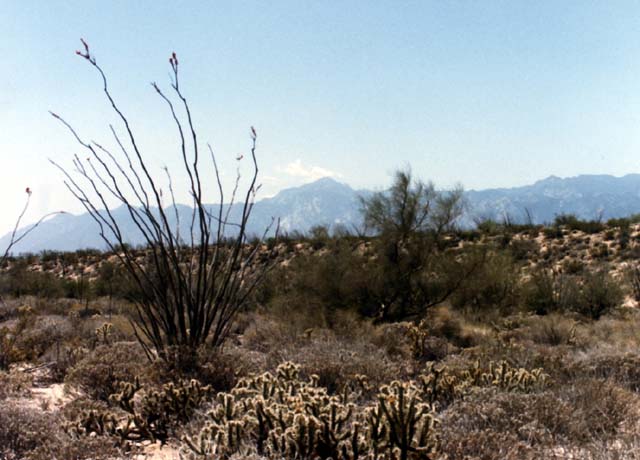 As we headed south toward San Felipe the desert brush got quite thick, remenesent of the Sonoran desert around Tucson. Below, you can see several kinds of cholla, ocatillo, palo verde and mesquite. Also note that there was a storm bearing down on us. The clouds seemed to evaporate at the ridgeline, but it was still a concern.