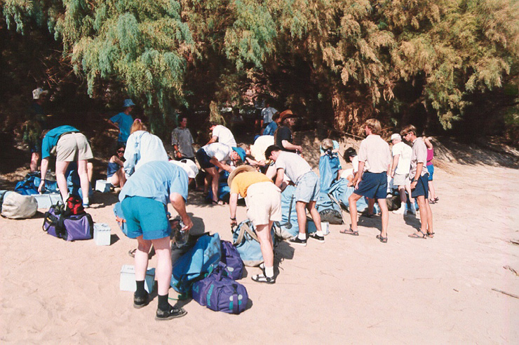 Back side of Bob and Lois in the foreground. All personnel were issued a waterproof bag for personal belongings. Salt Cedar trees in the background