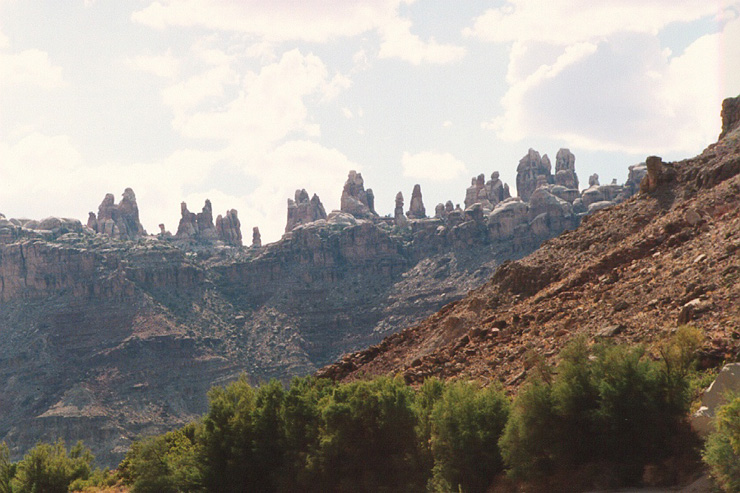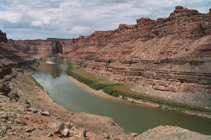 Needles on the sky line. This portion of the river abuts the Needles District of Canyonlands National Park in southern Utah.