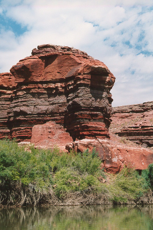 Notes and Comments : These photograpghs are of Cataract Canyon. The trip starts just outside of Maob, UT past the Potash mine. Once past the put-in point, the trip follows the Colorado River downstream through the confluence with the Green River and into Lake Powell. There are only a few rapids. However, the few that are there provide some real thrills. "Big Drop" is a set of two rapids that are more than 10+ and in low water are difficult to manuever. Since the trip was paddle boats, we had substantial difficulty with these obstacles. Our boat "wrapped" on BD-1 and I fell out. On BD-2 Kathleen fell over board as was swept through the rapids to the eddy pools below. She swallowed a lot of water and was delayed for 30 minutes while sorting things out. With us on this trip were Bob and Lois Means .