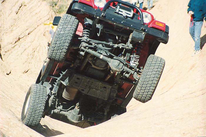 He is in danger of doing an endo; both front wheels are off the ground. Note Scotty's expression in the back. He was aggressively on the power to the very last. Happily, he did not roll.