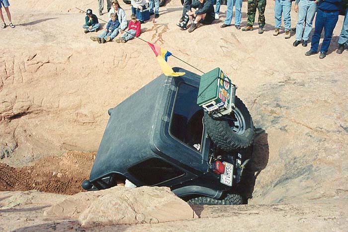 Down into the "Gates". Very steep indeed. Note section just in front of jeep.