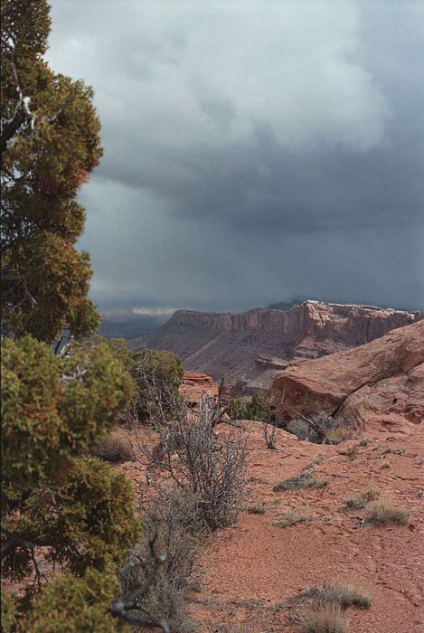 Storm approaches the mesa from the south. Dark and threatening, it was windy and pretty cold. It was raining on the south mesa.