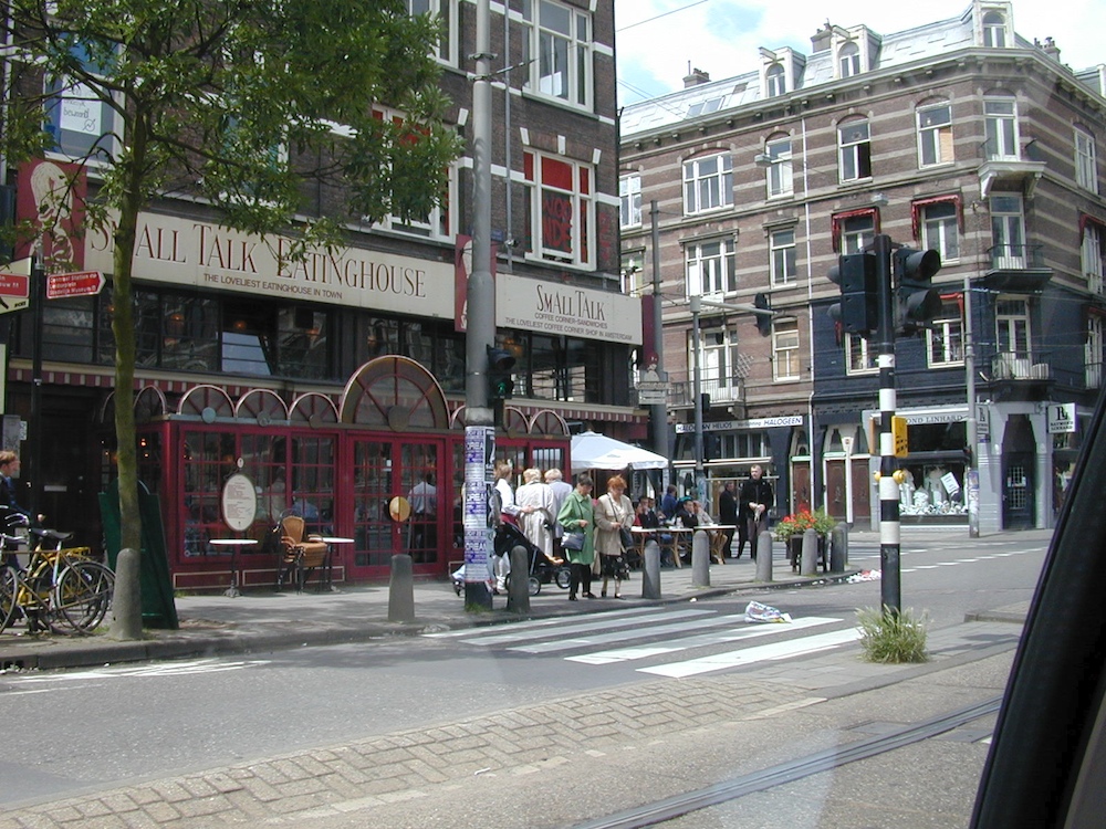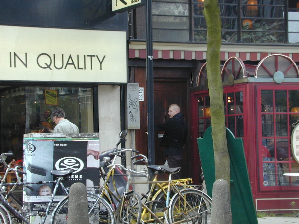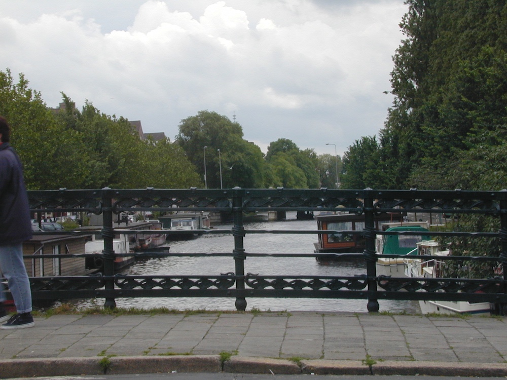 Scott, having been in Amsterdam before, had a plan. Our fist stop was a local "coffee shop" in the Red Light District. From there, we would head out on foot to explore the area. Since it was mid-summer and Amsterdam is quite northerly, it stayed light until about 1030pm. Once it got dark, people came out of the woodwork. There were rivers of people in the streets wandering aimlessly past the famous "women in the windows". Yes, what they say is true: the working girls display their wares from eye level windows for benefit of potential customers. The windows were, in many cases, in doors that would allow willing patrons entrance to small rooms where business could be conducted. While not taken back by the circumstances, I was amazed at the diversity of the product line. There was something for everybody: black, white, Asian, big, small, sports-themed, leather-themed and on and on. Each of the girls had their own "thing" to attract customers. I have to admit that a number of the women were stunningly beautiful. These girls appeared to be from eastern Europe and would have fit right in as centerfolds in Playboy. We also learned that these girls can read lips. I was admiring one from across the street and while looking at her asked Scott what the going price would be, whereupon she mouthed "twenty five guilders" (about $15 back then). I did not take any photos of things that night, but I am not sure why. The technical reason is that a flash would not have worked that well, but I am sure that the REAL reason is to prevent the existence of incrimating evidence.