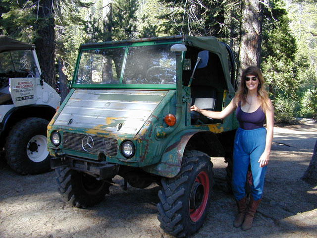 [Back to Index | Previous Photo | Next Photo ]Kathleen Jones, my co-pilot. Looks pretty tasty despite 5 days on the trail. Truth is, Mike had a home made water heater/shower device built into his cruiser, so we had hot showers at Rubicon springs - and in this case, with shampoo. No blow dryers though, darn.