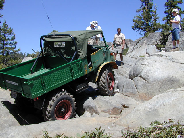 The 411 attacking, if not dominating the bypass. Note the size of the ledges with relation to the 18" rim tires on the mini-mog. Full tire diameter is about 40"