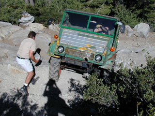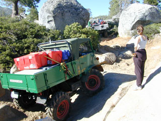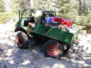 Given the mystique that accompanies the Rubicon trail and the fact that I high centered by 1300L on the Devil's Post pile obstacle just out of Wentworth Springs, it was with no small amount of anxiety that I prepared for this trip. The group planned a whole week on the trail. Since we were to be camping out of my small model 411 Unimog, substantial thought was required to prune the equipment to fit the available space. Even then, not all equipment fit and we had to rely on the kindness of strangers to carry the overflow load. Luckily, Dr. Dan Johnson has sufficient room in his 404 to accommodate my needs.