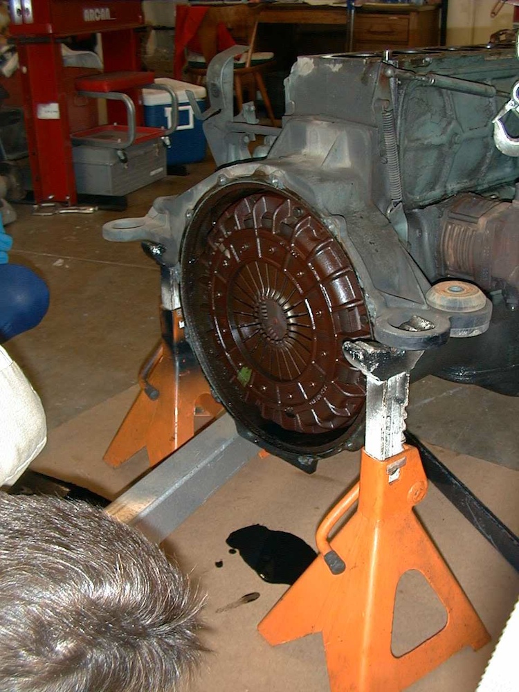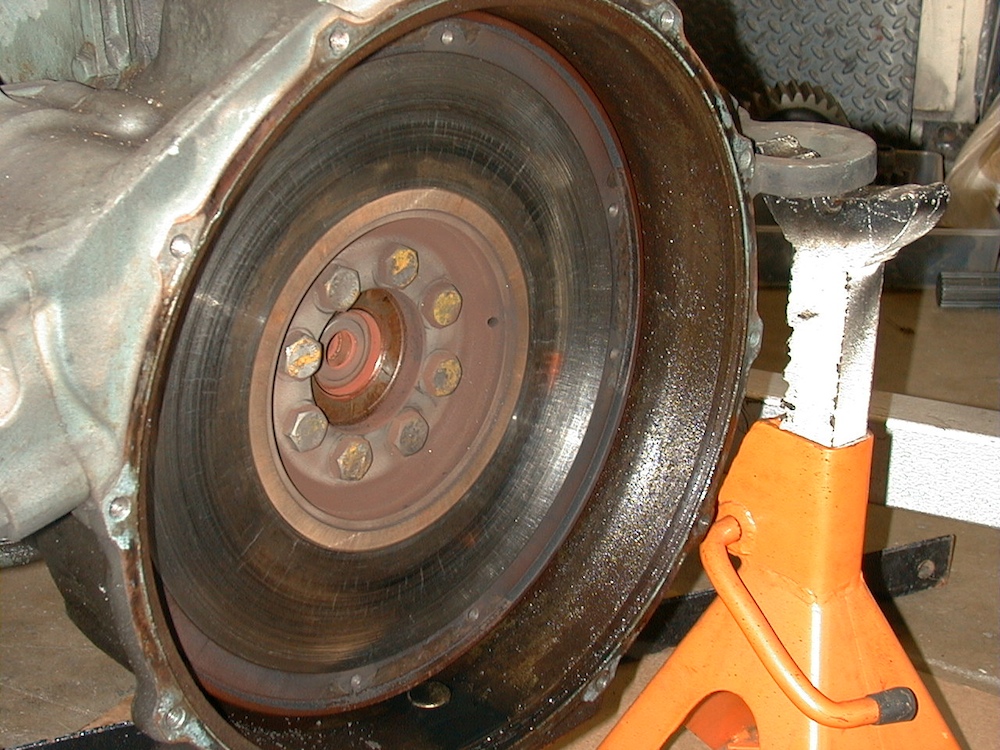 Note the oil in the bell housing and the scars on the flywheel.
