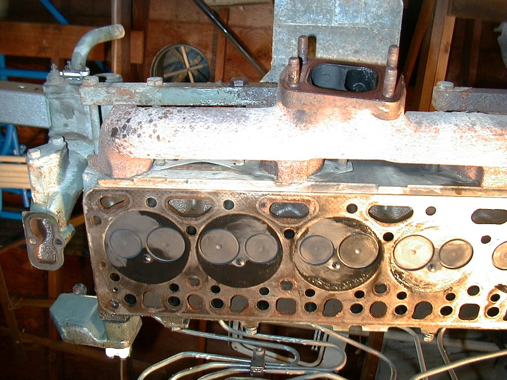 The head was taken off the motor while the block was still in the truck. The shot above was taken from underneath the head as it was hanging from the engine hoist.
