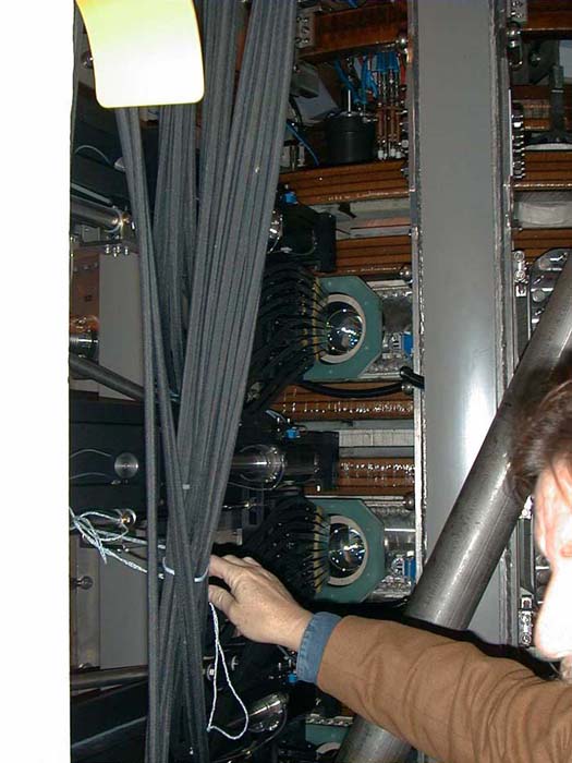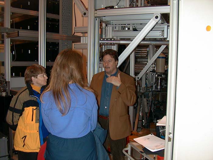 Lab director shows monitoring ports and optical fibers looking into windows.