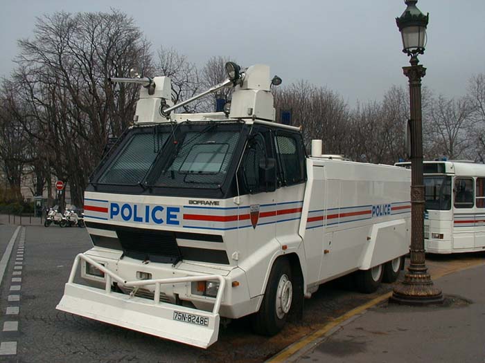 Hey are these French great or what? They do know crowd control. Nothing like an armored water canon to get your attention.