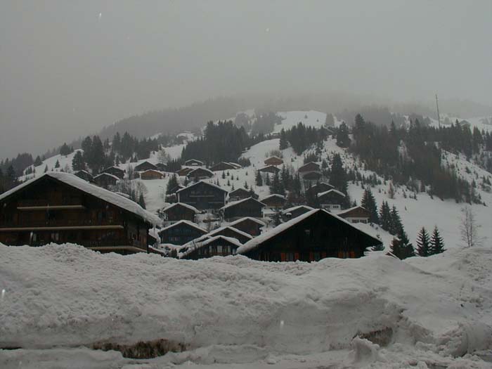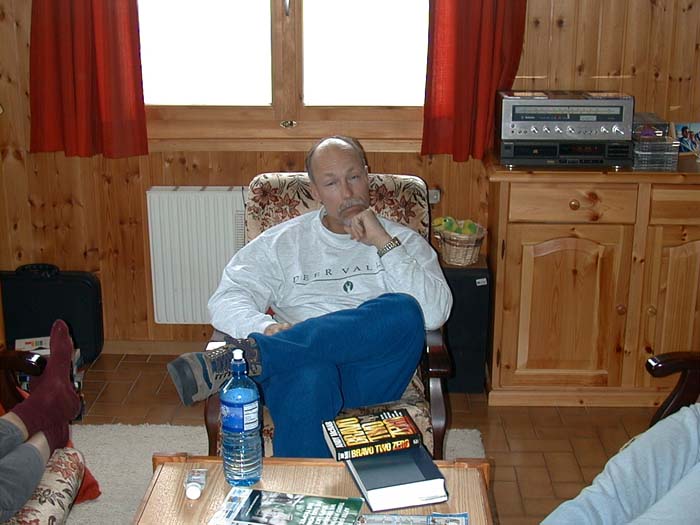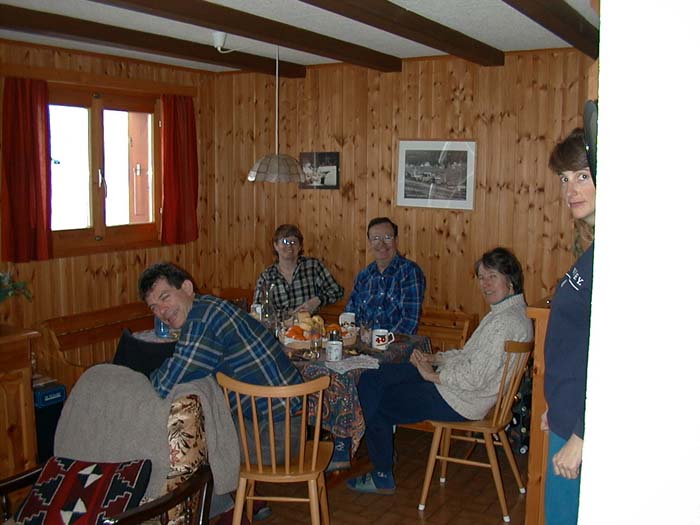 We were at a chalet owned by one of the guys that Bob Means used to work with at the tokamak lab (Joe and wife Judy). We went there for the weekend to do some skiing at the nearby areas. Sadly, the weather prevented that, so we just hung around the chalet. There was an avalanche across the canyon from where we were staying.