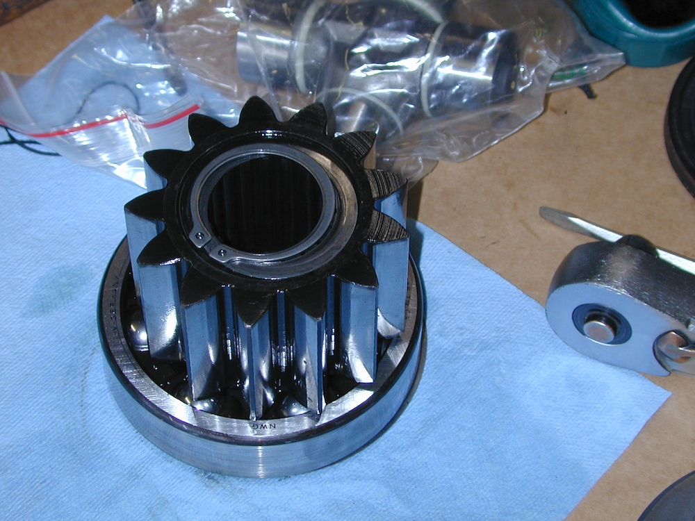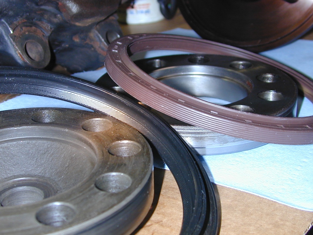 New bearings tapped into housing with tool on the right. The new oil seal is at the bottom center awaiting assembly.