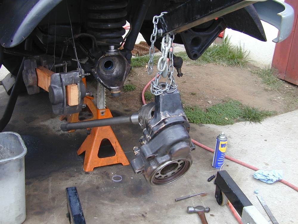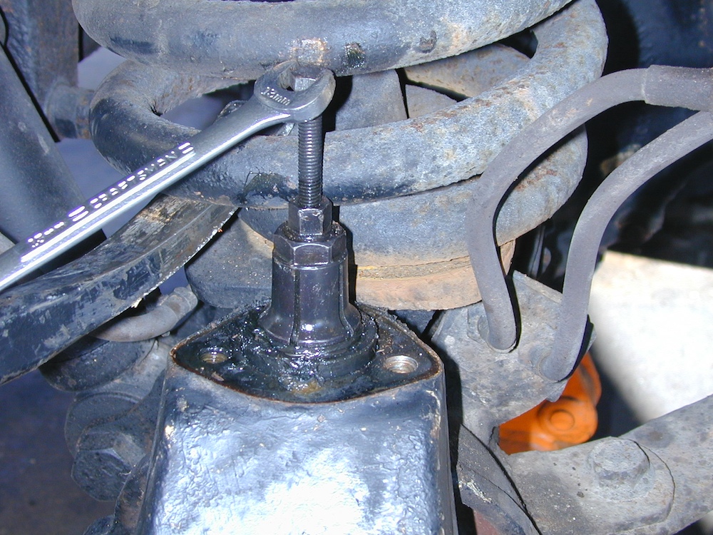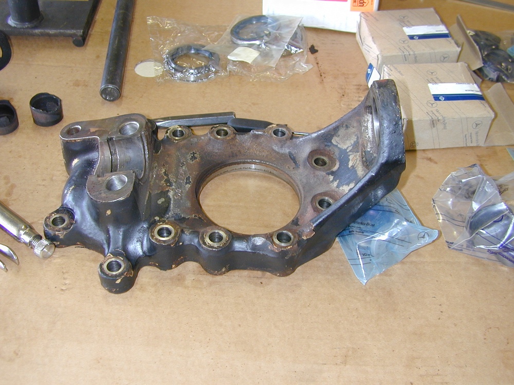 Taking the other side apart. The tool is pulling the bearings on the king pin.