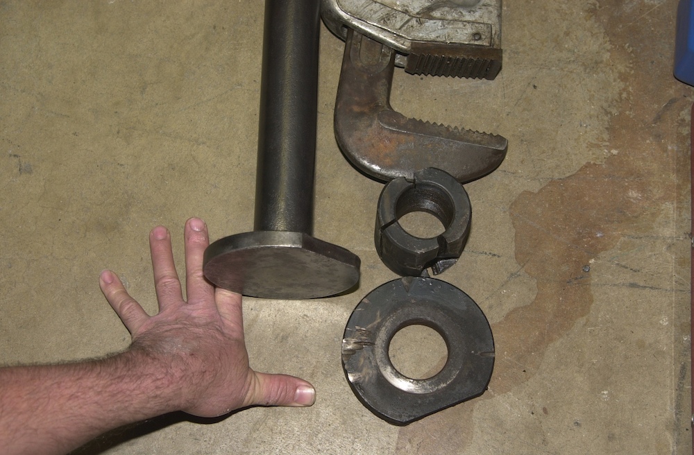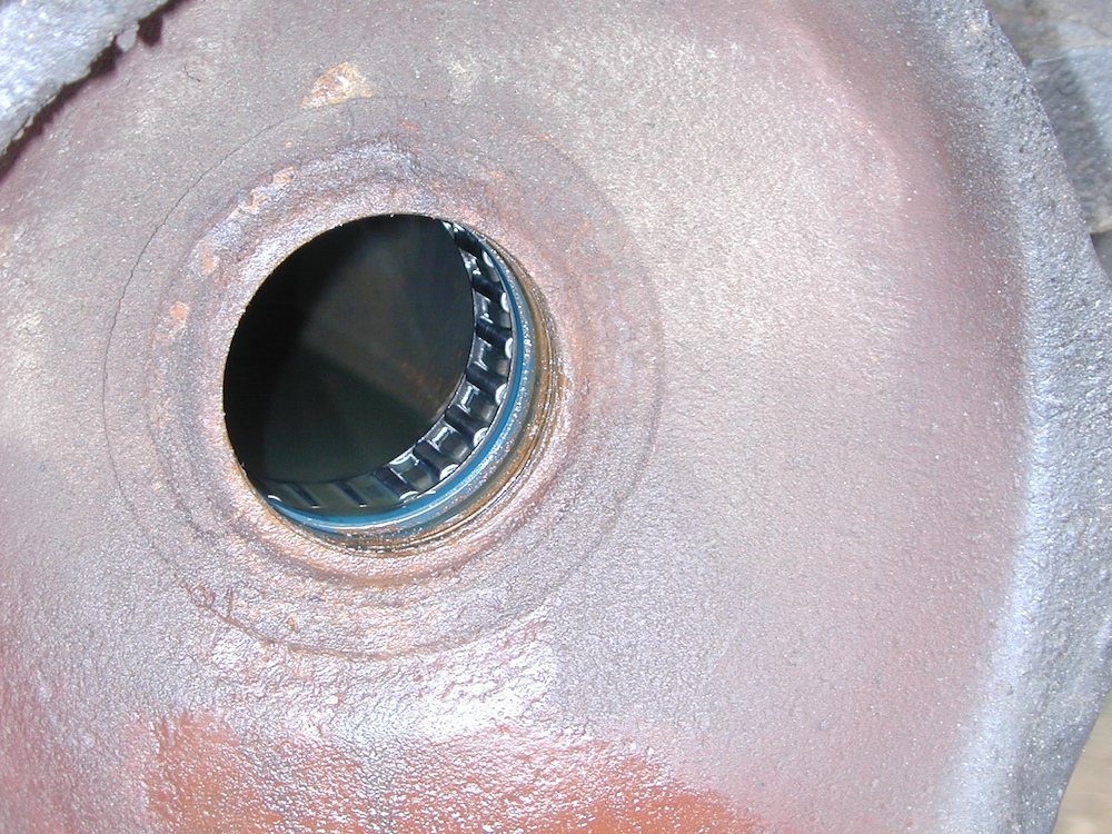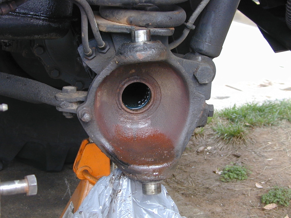The wear ring had to be cut off the axle shaft. Note the pits on the ring.