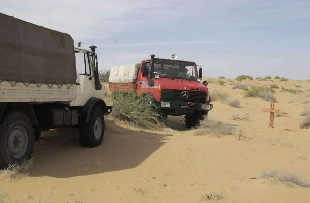 After many miles of navigation aided by the GPS, and seemingly in the middle of nowhere, we came upon this wooden cross. Given that it was asymetrical, it could be a road marker. Then only problem was that there was no road. Or any tracks. So, we concluded that it was a grave marker, left it alone and went on.