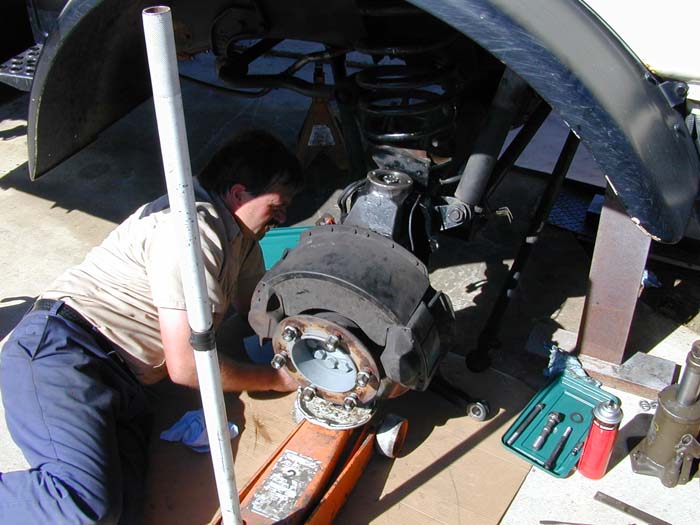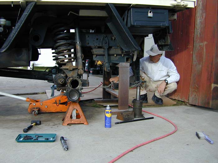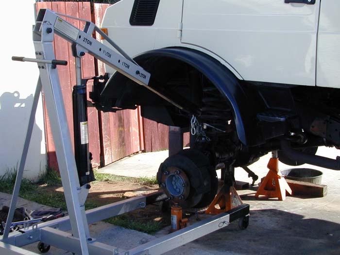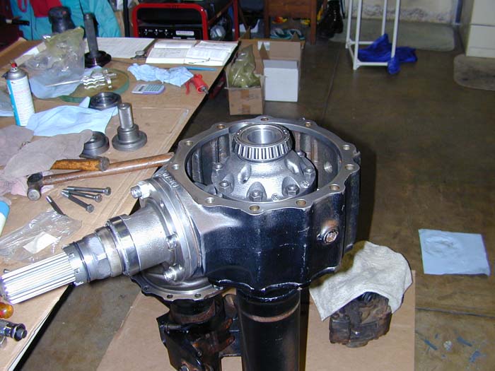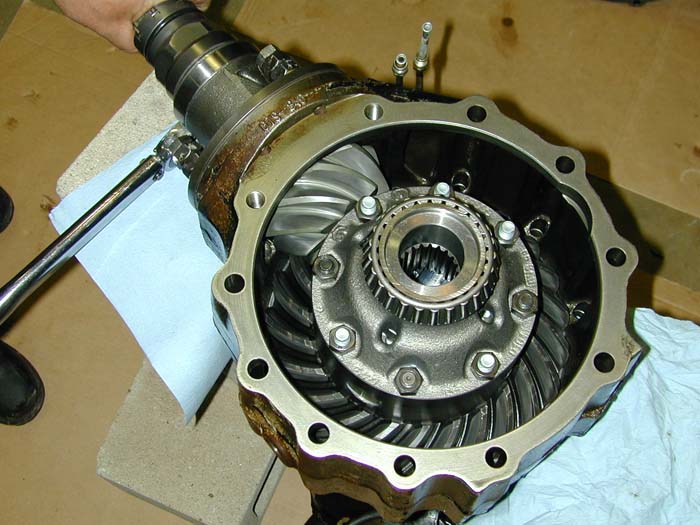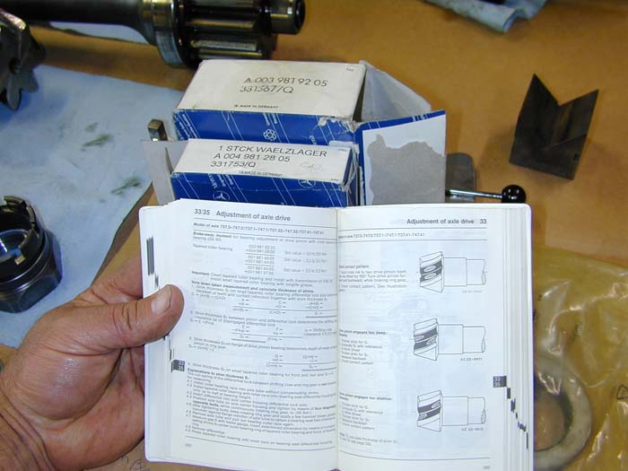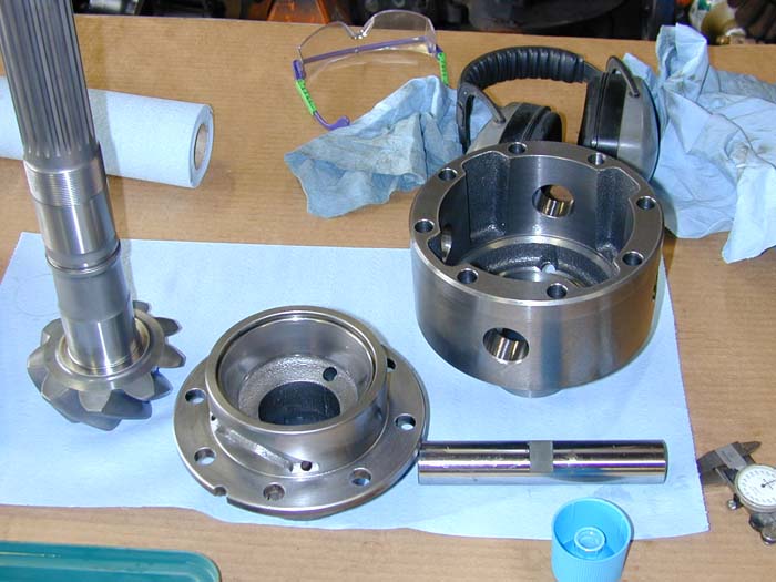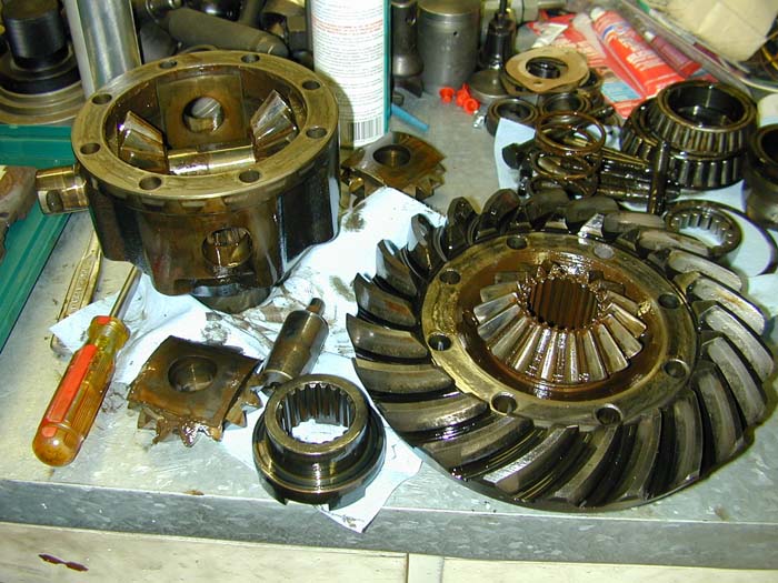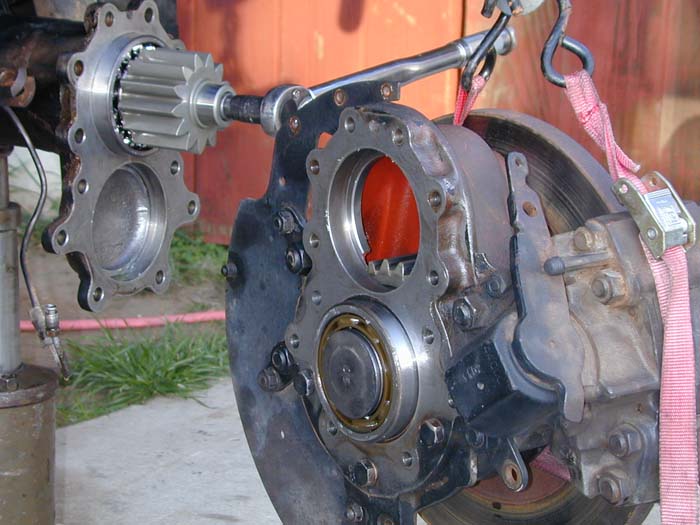 When I bought my Unimog model 1300L, it had had a hard life. My unit was not an ex-military truck, but rather had seen civilian service as an off road cargo hauler (explosives and seismophones for a geophysical exploration company). One of the previous owners, of which there were at least 3, "submarined" the truck and got water in the portal axels and drive line. After sitting for extended periods, the rust finally took it's toll. Eventually, the wear and rust pitting got so bad that the truck would grind as you drove it at low speed. Of course, you could only hear it at low speed due to the tire noise. The damage was building and eventually, it would have to be replaced. One other issue bothered me and that was the truck's inability to hit 60 mph due to low gearing. The plan was to kill 2 birds with one stone. Master mechanic Kai Serrano would replace the ring and pinon gears and we would replace them with a higher ratio, thereby giving me additional top end. It was a good plan, although the gear sets were viciously expensive ($3K a pair or something obscene like that). And of course, you need new bearings, seals, etc so the actual price was much, much higher. The photos below describe the process of changing the gears and detail the intense damage that was present in the rear gear set..