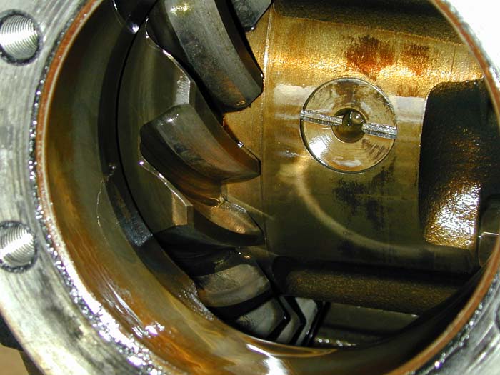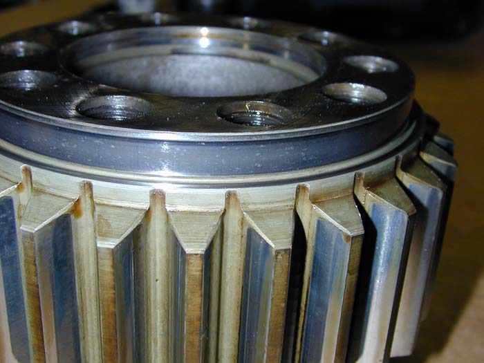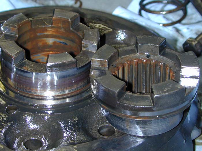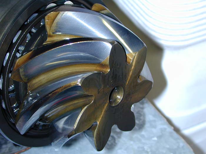 This is the used front pinion -- not the smooth polish as opposed to the scarring on the rear pinion.