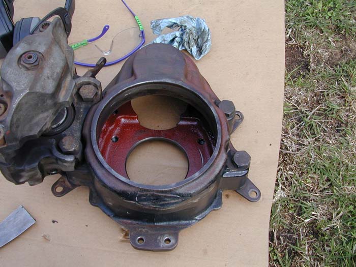 Torque tube housing separated from the transmission housing. Note joint in center.