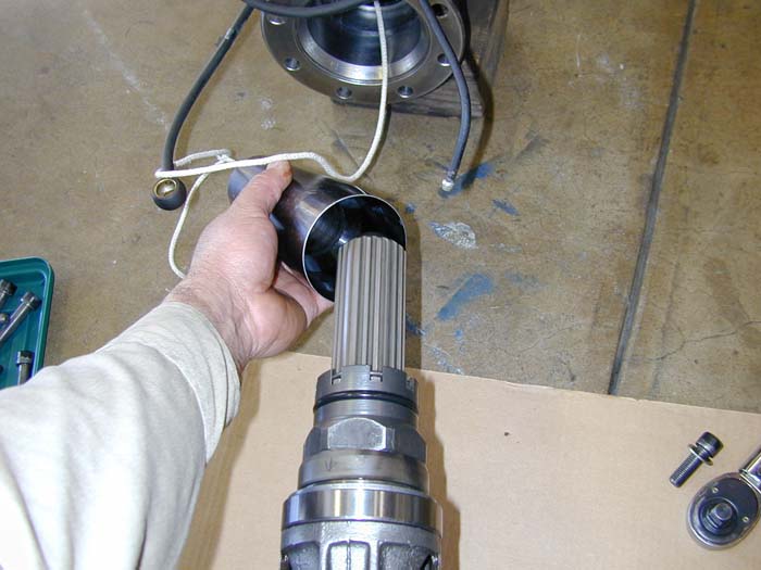 Using assembly tool to protect spline ends of unit before inserting into the torque tube.