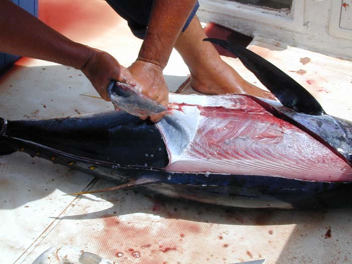 Cleaning the tuna.