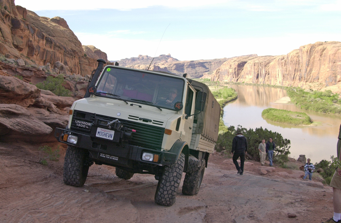 The Moab Rim is an E-ticket ride. Even with a capable vehicle like the mogs, it still requires careful attention to insure that there are no mistakes. On this trail, mistakes will be very expensive, possibly costing your life. We completed the trail with lots of daylight to spare, so we headed back to camp for cocktails and stories..