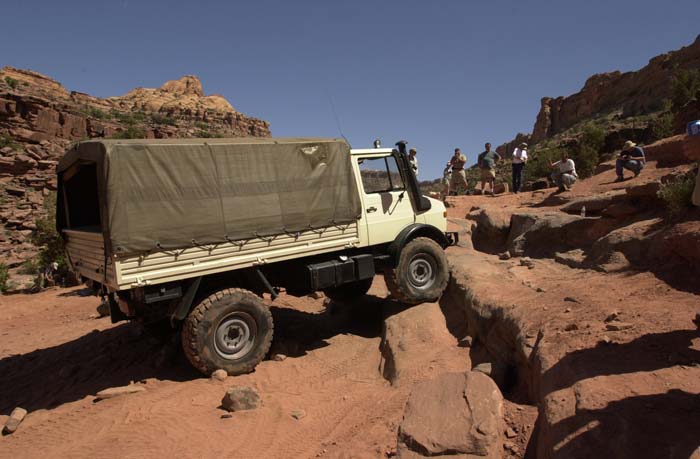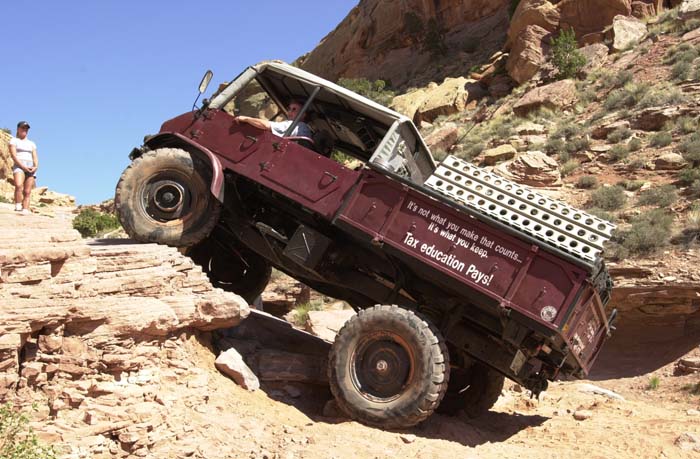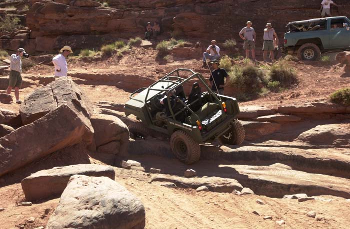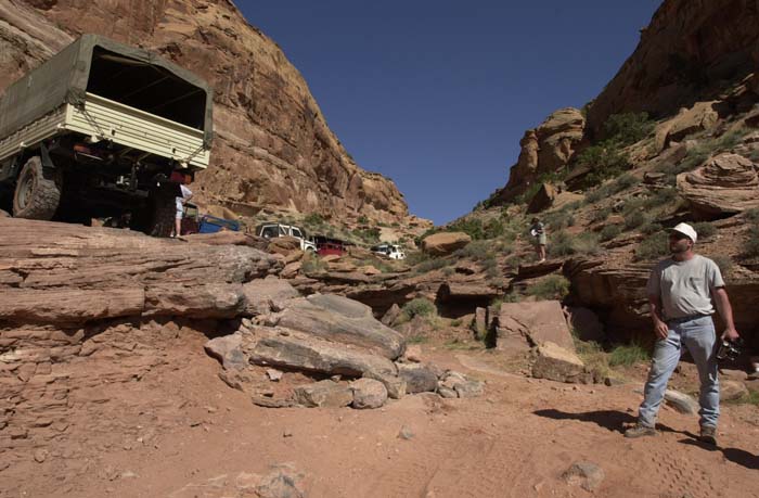 Rob Pickering tries the classic route, but failed. The jeepers try to power their way up this and sometimes take a slow running start.