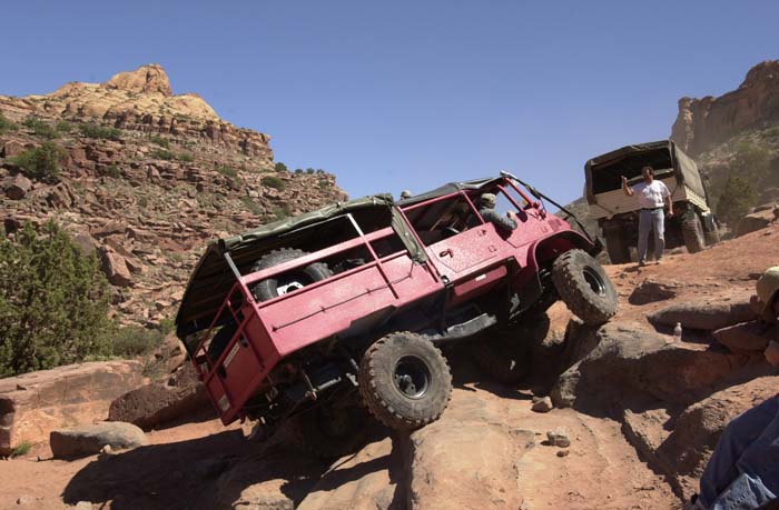 Prichett Canyon Trail is always tough. It has some world-class obstacles like Rocker-Knocker and the Rockpile. And these obstacles have no bypass, so once you go, you have to finish. Since the trail is reasonably popular, you really cannot go downhill as there is too much oncoming; you go from bottom to top. As we will see below, even the mogs can have a tough time. On this trip, there was a substantial group of Suzuki Samarui's in front of us. Being so small and short wheelbase, they got kicked around on several of the obstacles.
