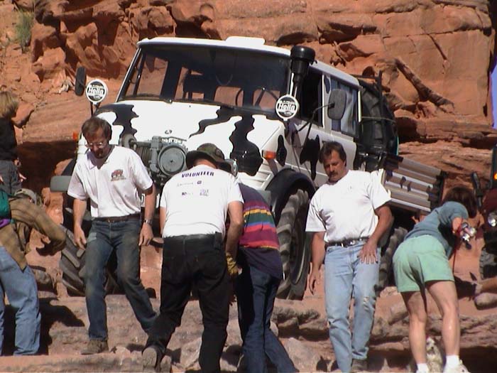 Ron DePugh attemptedto drive around it, but in the end he took the winch cable.