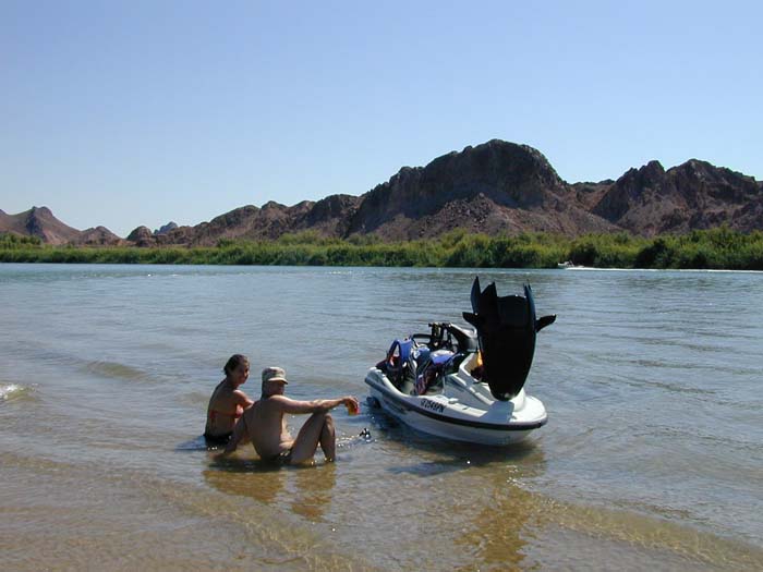 The Colorado River is a haven from the raw scorching summer heat of the Lower Colorado desert. Yuma is the jumping off point to many interesting locations on the river. The river is a great place for ski boats and jet skis. Generally, the water is warm and smooth. Jessica, Kathleen and I went there late in the season (October) with my jet ski. We tried to go to the river access point at Senator's Wash, but the access was closed for repair. So, on the first day we went to the lake at Senators (which is actually a reservoir with no access to the river). On the second day, we got into the actual river and went upstream quite a way.