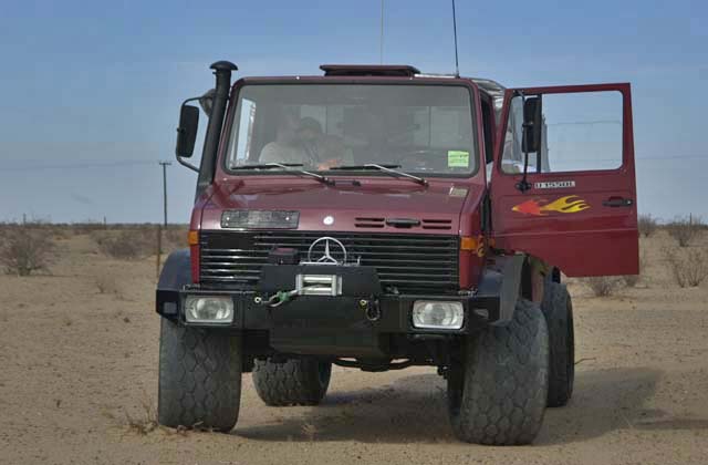 Next is the 1550L with some magnetic flames for that extra speed. Given that the 1550 has the OM366 motor, the flames were justified. Dan is running the 22x20 Continental sand service tires on stock Unimog rims. His rig, in addition to a spare fuel tank, also has central tire inflation which was as much of a hindrance as it was a help.