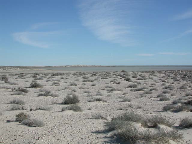 After many miles of travel in the tundra, we finally spotted the Gulf of California (or the Mar de Cortez for the linguistically minded). The shimmer of the waves could be seen in the distance in the photo below. But, it was slow going in the tundra. The hillocks would hit those wide tires and whip the steering wheel around risking damage to your wrist and thumbs if you did not have good driving posture. Indeed, on the previous day, the wheel whipped so hard that it bruised my thumb and tweaked my lower back as I attempted to control it.