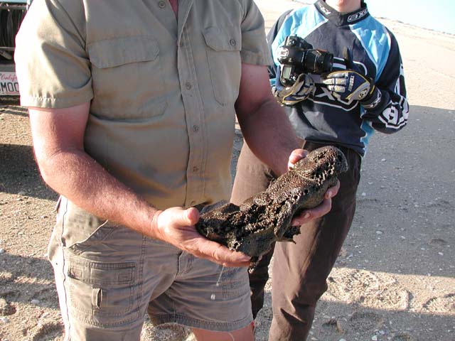 At a beer stop, Kai discovered some flotsam on the beach. This is a sea sponge.