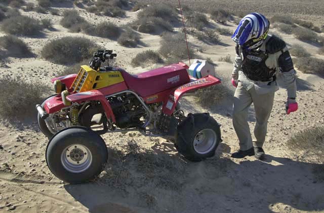 We made reasonable progress during the morning, traversing the dunes without any real problems. Kathleen drove the 1300 and I rode the Banshee.