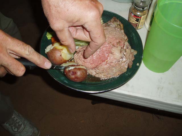 I did 12 pounds of prime rib and the 10 campers ate it all. Much thanks to Matt and Kai for helping dispose of this great quantity of meat.