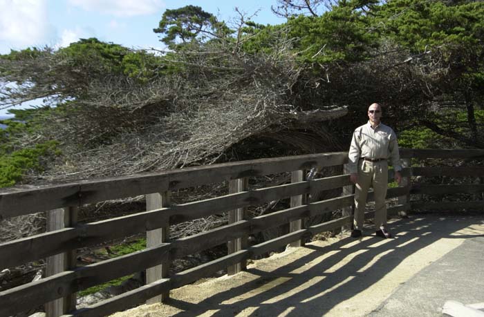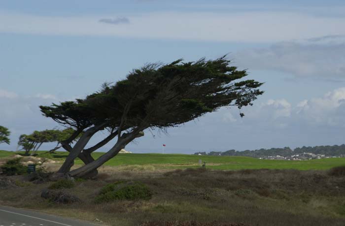 Wind swept cypress tree.
