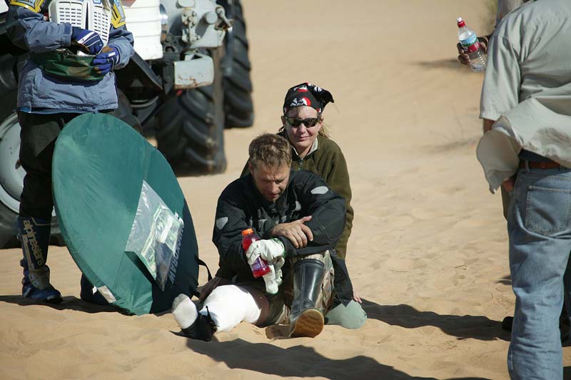 To prepare, take ingredients, douse liberally with diesel, gasoline and alcohol. Mix with 300 square miles of trackless desert. Add large quantities of wind-blown sand. Shake (not stir) with a vigorous pounding in northern Sonoran "tundra". Bake in the desert sun daily for 4 days, letting mixture cool at night. Garnish with 8 large de-beaded 20" tires and top with serious knee injuries.