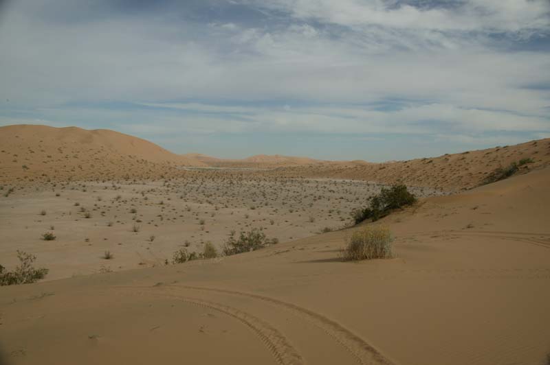 After fuel and getting clams, shrimp and tortillas, we headed back into the dunes. In town we purchased mass quantities of shrimp and clams. Below, Kathleen takes a photo of the team back in the dunes.