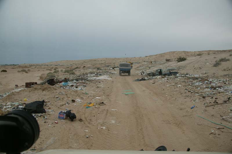 As we got closer to El Gulfo, the scope of the garbage in the canyon became apparent. I thought that the evenly spaced abandoned washing machines were quite artistic. The smell from the rotting shrimp heads and the associated flies were sobering, so we moved along smartly after the photo to stop at the only Pemex in town. Gladly, we all got fuel, though they were running low.