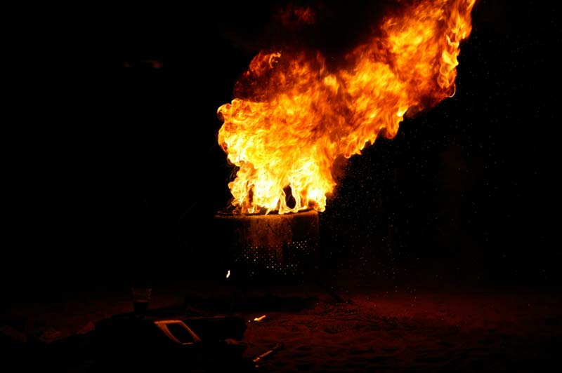 Kathleen completes cooking the clams. Dinner was steamed clams with butter and hot sauce. That was followed by a second course of grilled shrimp and garlic sauce with tortillas.