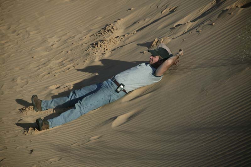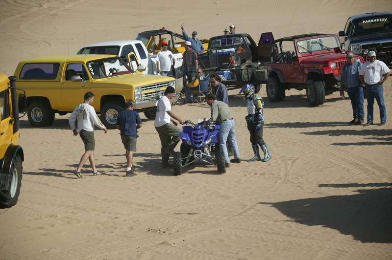 The 3 tire dig-fest took a long time. While we were doing the tire service, Jose decided to put that dune face to good use. The balance of us used the time to load the quads in anticipation of leaving the dunes.