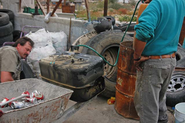 At first, the plan was executed flawlessly. We were up at first light and getting packed pretty much on schedule. We went to the cook shack for breakfast and it was ready on schedule. We had chililiques, beans, tortillas, juice and coffee. It was good and best of all we did not have to cook and clean. After breakfast, we hit the trail for San Ignacio. In the parking lot of the cook shack, I noticed the smell of diesel, but did not give it much further thought. We were ready to roll, so we hit the trail. The trip to San Ignacio was 4 beers long (plus or minus) and was uneventful. However, after we got to San Ignacio, the plan fell apart quickly.