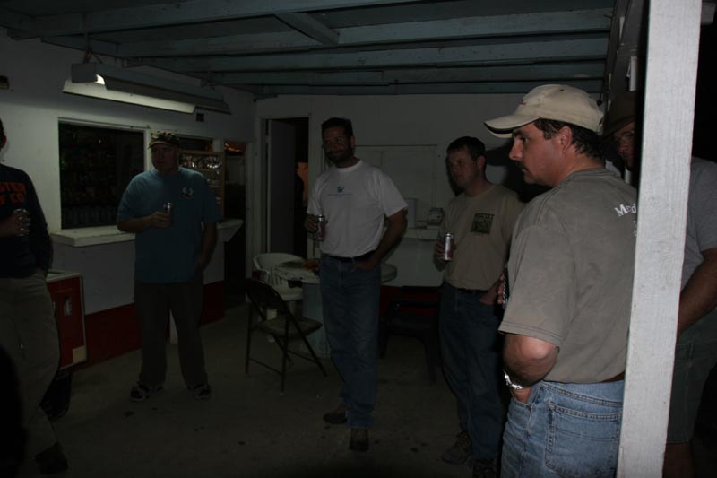 Below, the boys drink beers in the taco stand "dining room".