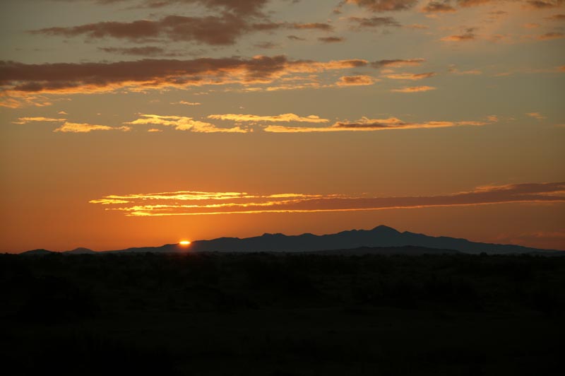 Sunrise over the Pinacate Volcano as seen from the Confluence..