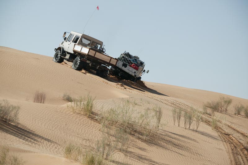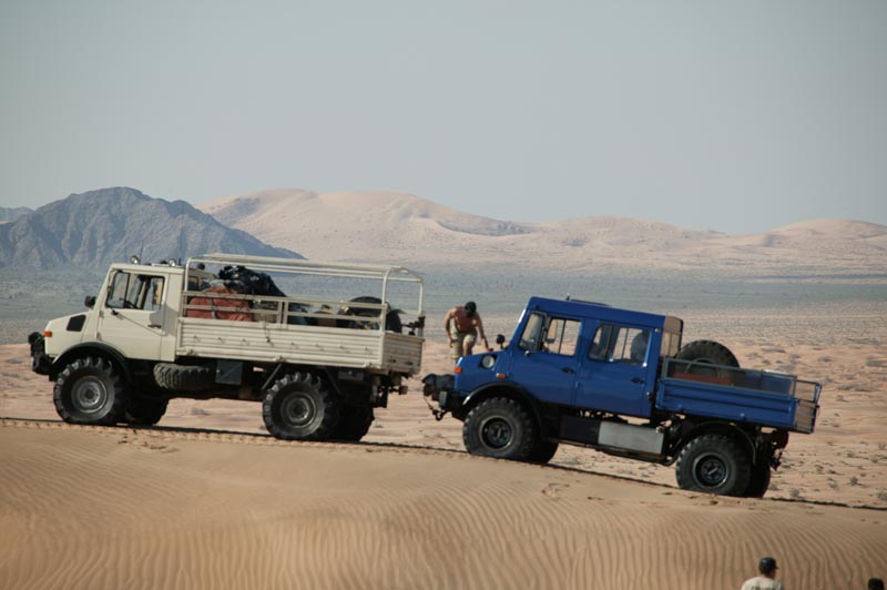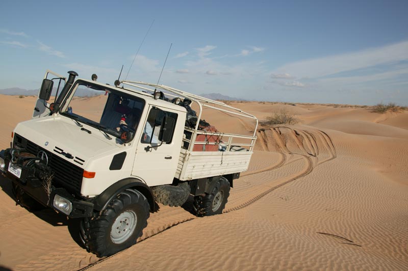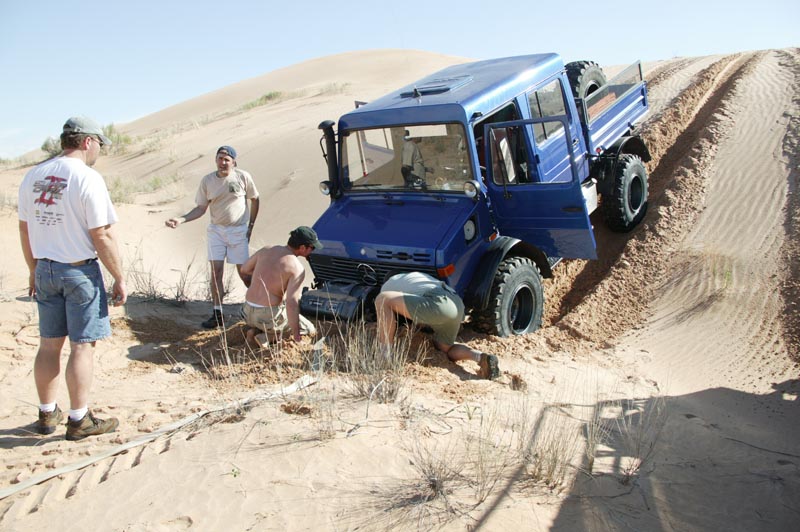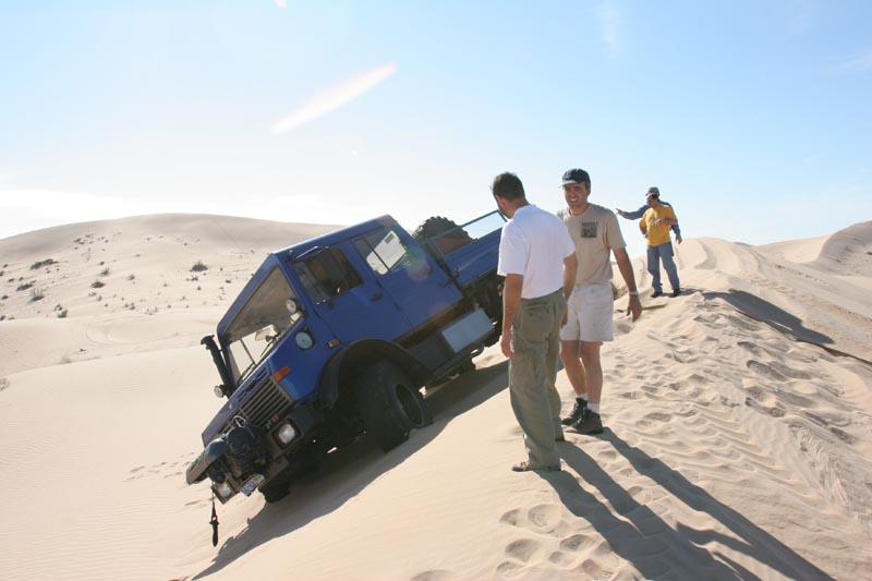 Roberto buries the winch on a down grade. The boys in the blue truck drank a whole bottle of rum earlier in the day.