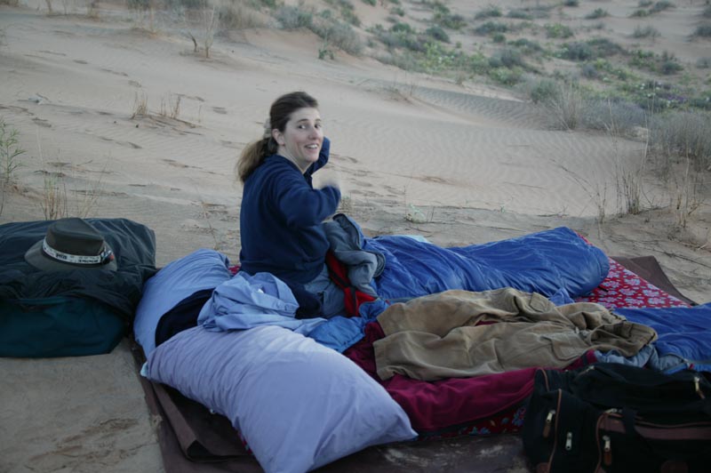 The team had a great night, there was plenty of red wine to keep things lively. As we went to sleep, a heavy fog rolled in coating us all in dew. Below, Kathleen wakes up to discover that the sleeping bag is soaked.
