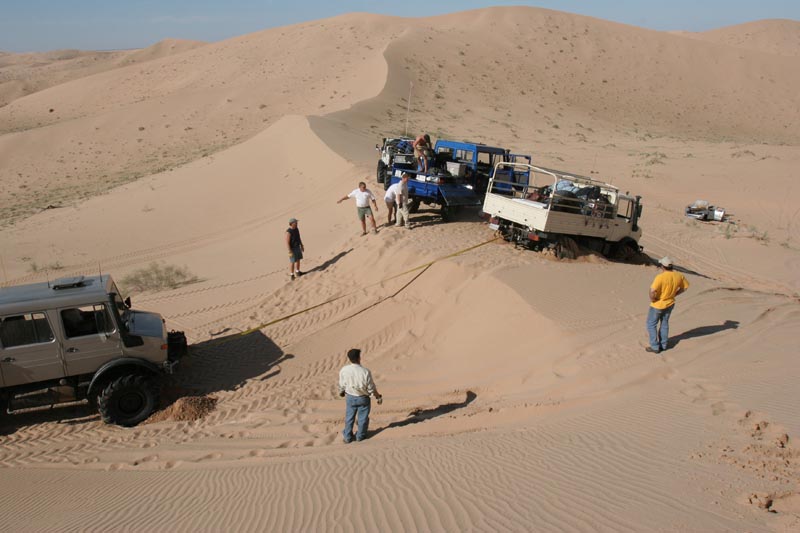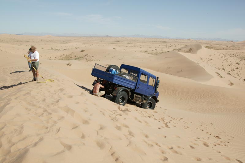 We came out of the dunes at a different spot than usual and got somewhat lost. In our attempt to get to the main highway, we ended up having to cross this dry irrigation ditch. No problem for the mog; big problem for a standard truck.