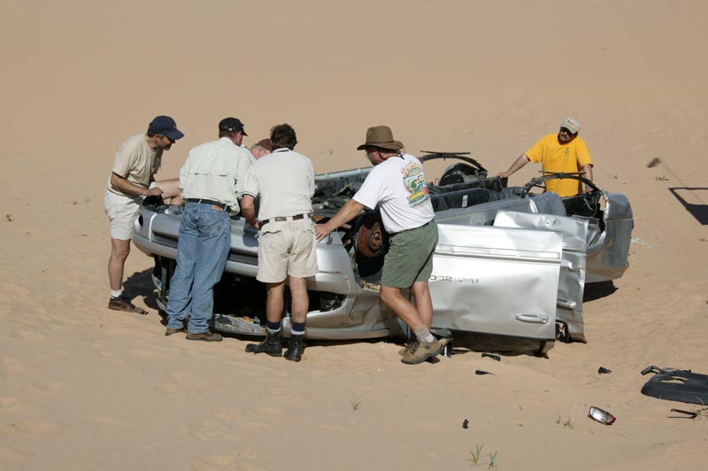 Rob uses his Jed Clampett winch to roll over the vehicle to remove articles of interest.