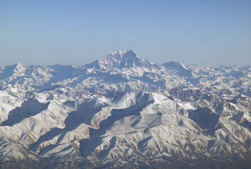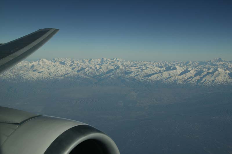 Zoom of Acongagua peak (22,834 feet) in the Andes from plane window.