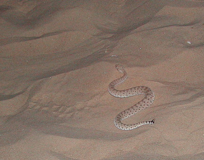 Kathleen spotted this sidewinder rattlesnake a few feet from where I was dozing and the team redirected him to another destination rather than me.